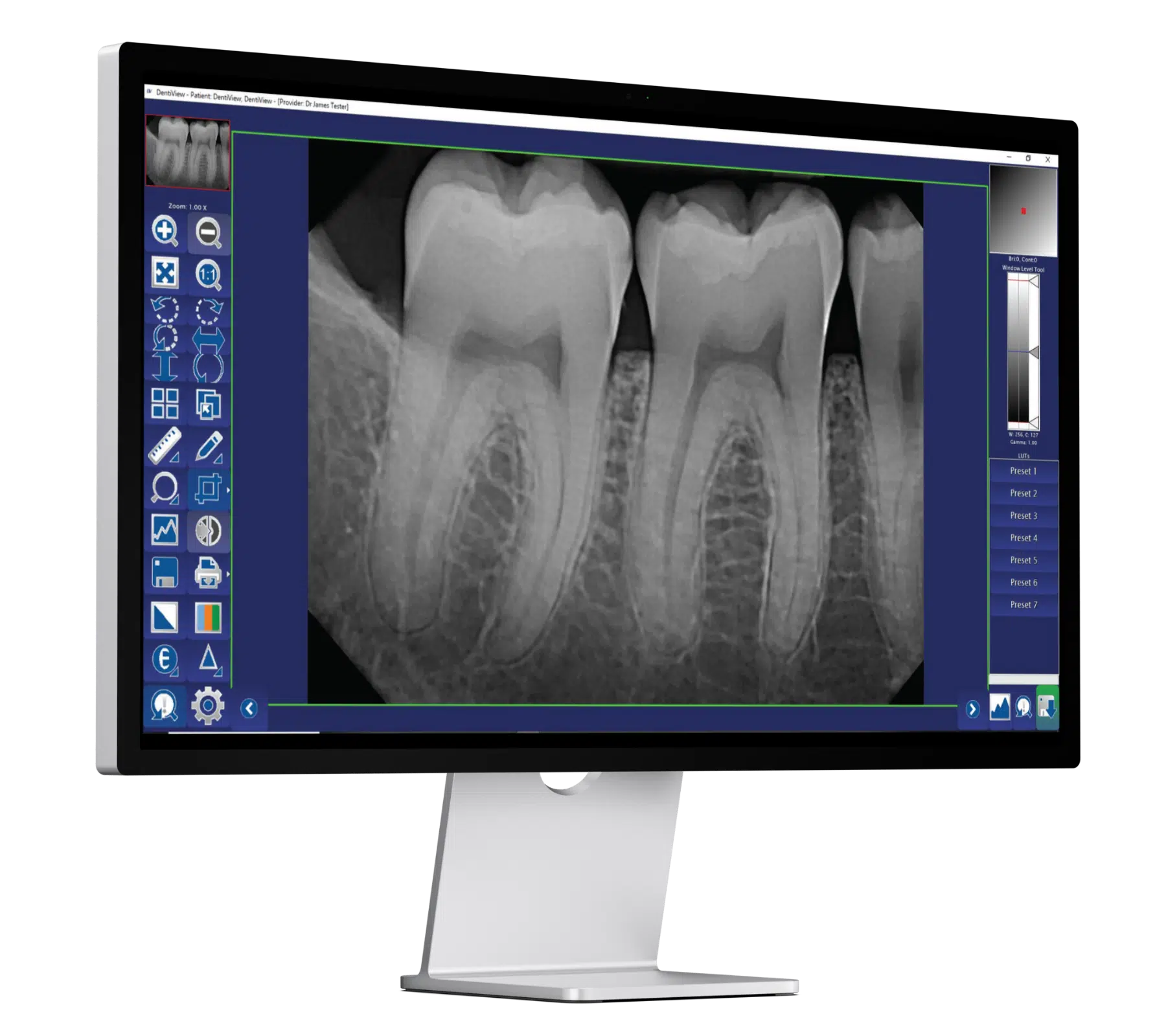DentiView Dental Imaging Software lets you capture dental X-rays from any digital X-ray sensors you choose and integrates with your practice management software.