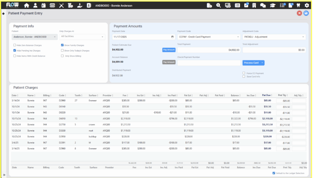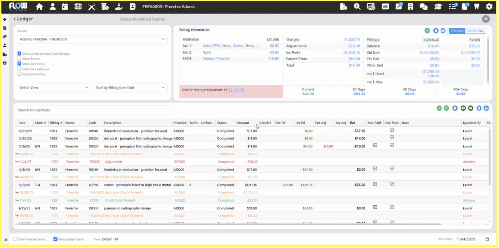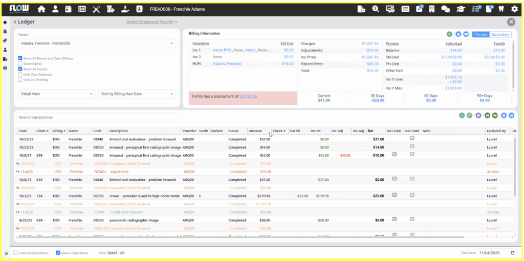 DentiMax Flow’s line-item accounting features are specifically designed to eliminate the inefficiencies that plague older systems. Every transaction, whether an insurance payment, patient payment, or write-off, is linked directly to the exact procedure it covers.